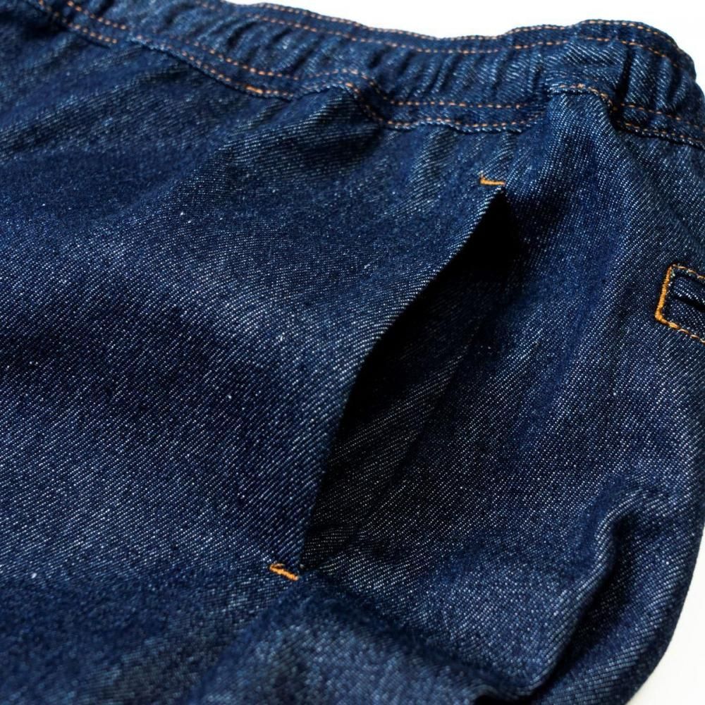 カンフーパンツのシルエットをデニムパンツに落とし込みました。