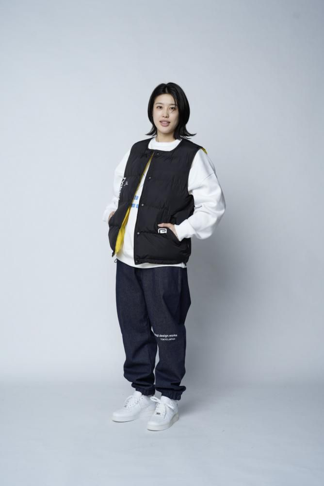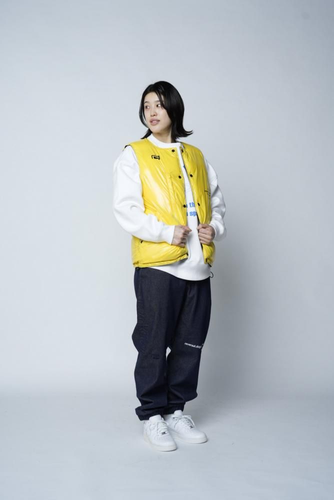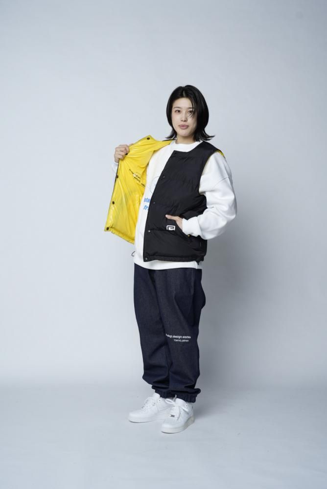 リバーシブルなのでコーディネートの幅が広い万能な中綿ベストです